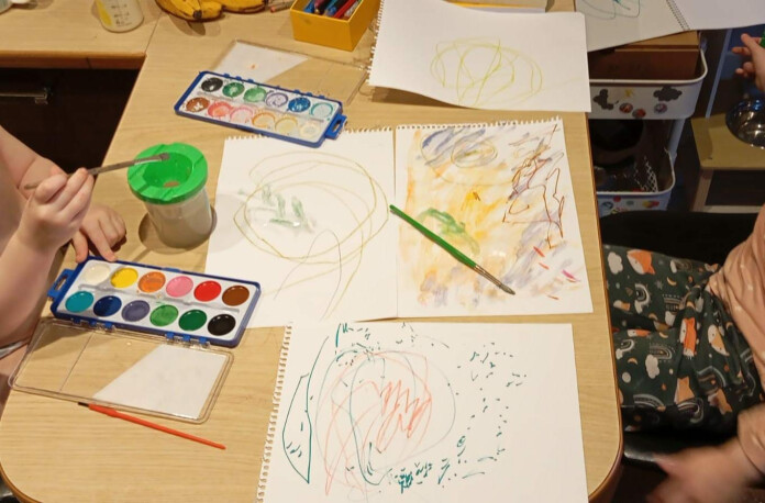 Vispirms ļaujamies sajūtām uz papīra, gleznojot, zīmējot, ķēpājot, krāsojot..