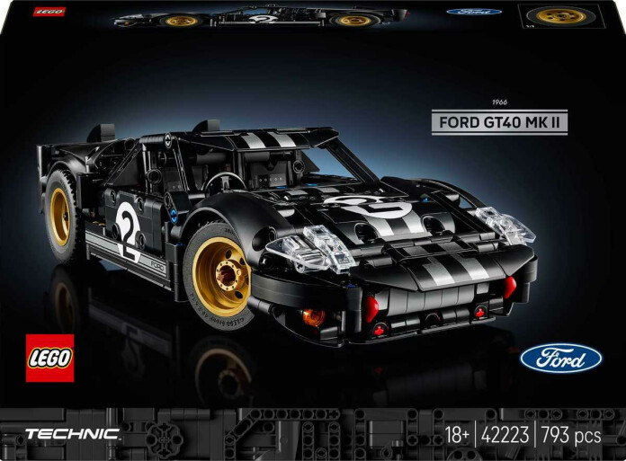 LEGO Technic sērija ir nākamais līmenis, un "1966 Ford GT40 MKII sacīkšu auto pieaugušajiem 42223" (793 gab) ir pierādījums tam, ka konstruktori nav domāti tikai bērniem. Šis modelis ir veltīts leģendārajam sacīkšu auto, un tas ir paredzēts pieaugušajiem entuziastiem un pieredzējušiem būvētājiem. Komplekts piedāvā ne tikai estētisku baudījumu, bet arī nopietnu inženiertehnisku izaicinājumu.