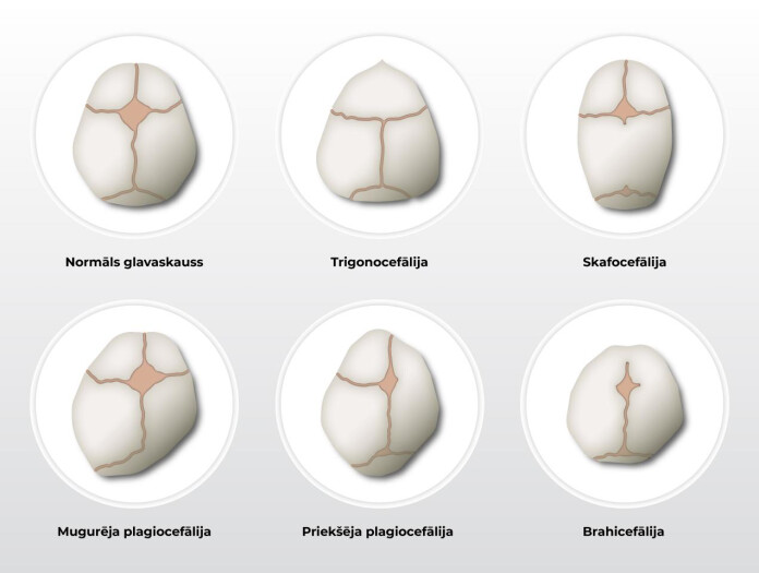 Kraniosinostozei izšķir 4 galvenos veidus: