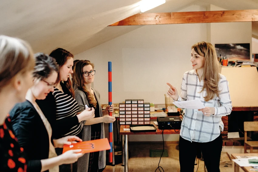 Evelīna vada Montesori semināru Tallinā. (Foto: no privātā arhīva)