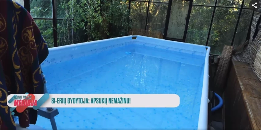 Loreta ik dienu sāk ar peldi vēsā baseinā savās mājās. Foto: ekrānuzņēmums no LRT televīzijas