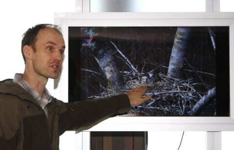 Durbes jūras ērgļu ligzdas tiešsaistes projekta vadītājs, ornitologs Jānis Ķuze: “Vērot šī brīža norises ligzdā var būt emocionāli grūti, taču tieši tāda ir tiešraides kameru būtība - tā parāda dabas norises to visās izpausmēs”. (Foto: Zilgma Kukle/LETA)