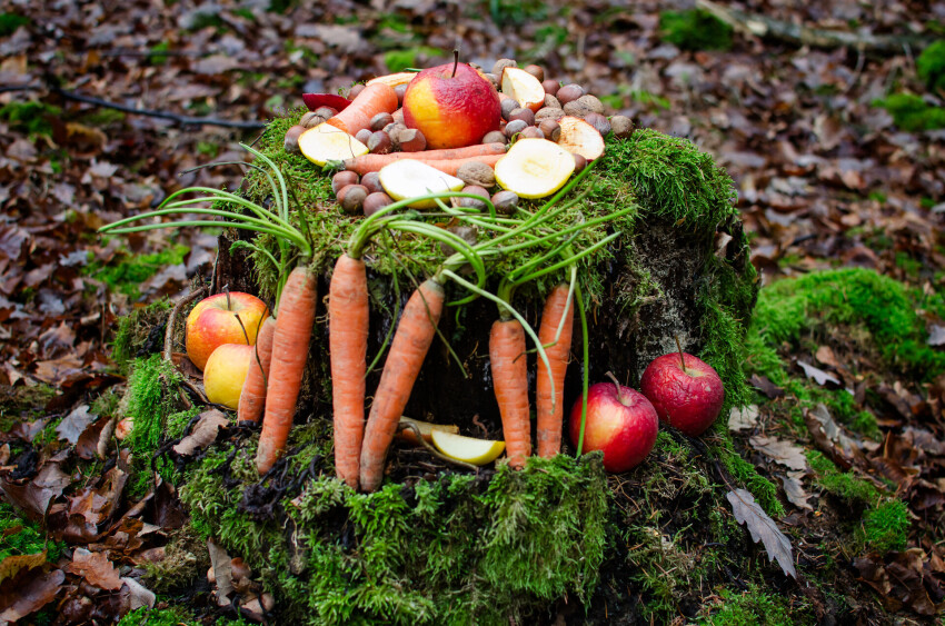 Atceries, ka zvēri ēd no zemes (un nevajag zem cienasta glīti paklāt salvetes vai ko tamlīdzīgu, jo tas tikai biedēs meža iemītniekus un piedrazos dabu). Eglītē augsti iekārtu burkānu garausis nemaz nespēs aizsniegt.