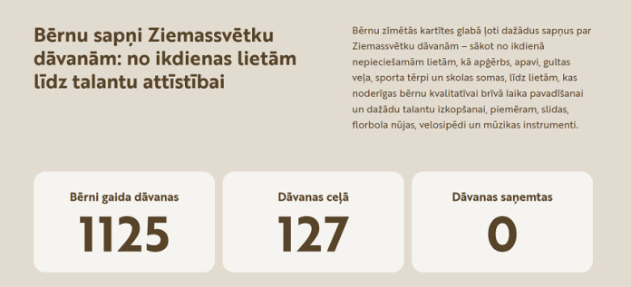 Šī raksta tapšanas brīdī, proti, vien pāris stundas pēc namiņa durvju atvēršanas, ceļā ir 127 dāvanas, taču bērnu, kas gaida, ir daudz daudz vairāk: