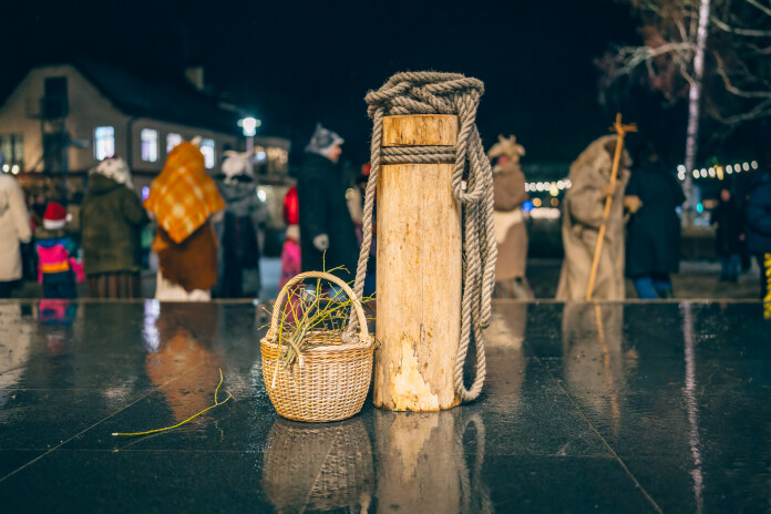 Ziemas saulgriežu tradicionālā svinēšana ar bluķa vilkšanu Siguldā