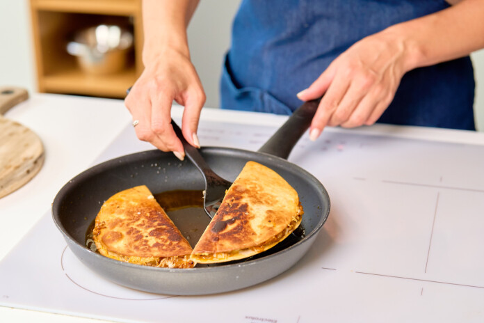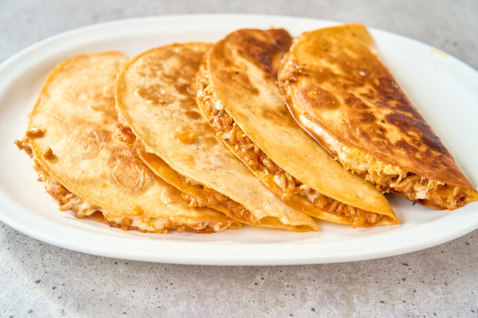 - Uz tortiljām uzber sieru, uzliek maltās gaļas masu, tortiljas pārloka un apcep uz pannas eļļā zeltaini brūnas. Pasniedz siltas.