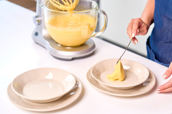 - Masu sablendē, līdz tā kļūst gaisīga. Pasniedz ar pienu.