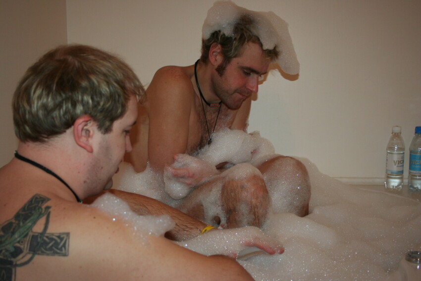 Gatavojoties tusiņam, Mārča man saka, lai es ieslēdzot burbuļvannu un ielejot tajā putas. Es tā arī izdaru, džakuzi pildās ar ūdeni, es iespiežu putas, un taisāmies uz vakariņām. Tikai Freimis, pēc kāda laika pamanījis, ka ūdens vannā neputo, iespieda vēl putas un pārmetoši man vaicāja: “Tu to džakuzi vispār ieslēdzi!” Protams, ka nē! Tad nu ieslēdzām un gājām visi vakariņot. Kad atgriezāmies, vannasistaba bija pilna ar putām. Viss putās, līdz pat griestiem! Protams, tas ansambli tikai iepriecināja,” stāsta Mareks, sakot, ka nākamais rīts vairs tik jautrs nav bijis: “Taisāmies prom, bet Freimis kā nenāk, tā nenāk, līdz parādās ar rūpju nomāktu seju – izrādās, ka no burbuļvannas nekādi vairs nevar nolaist ūdeni, esam kaut ko tur sabojājuši. Un, kad braucām prom, Freimis teica: “Jūs vispār zināt, kā tas mans numuriņš un koridors izskatās? It kā tur varza ar netīriem suņiem būtu mazgāta!”
