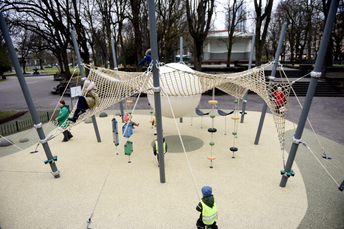 Atvērts jauns rotaļu laukums Vērmanes dārzā. Foto: Zane Bitere, LETA